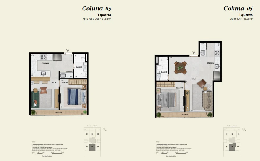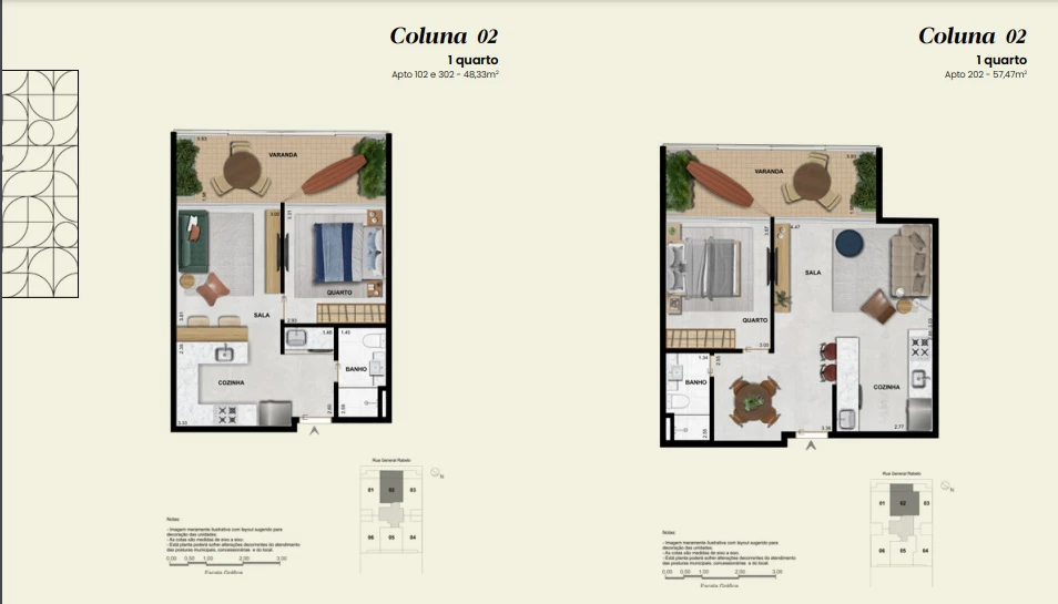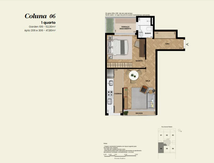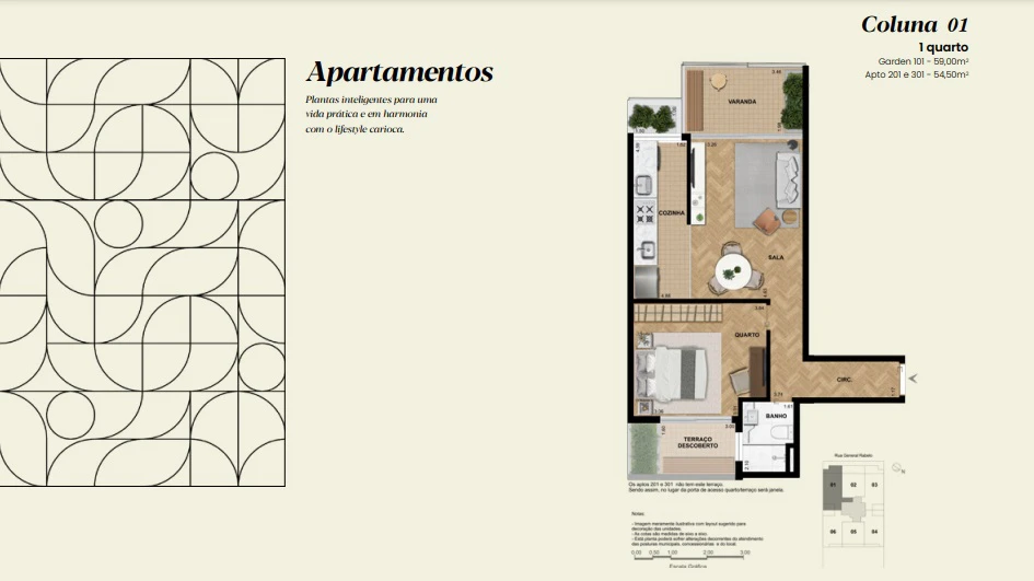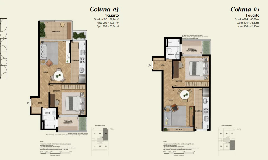 Apartamento Garden 1 quarto de 48m² até 59m².